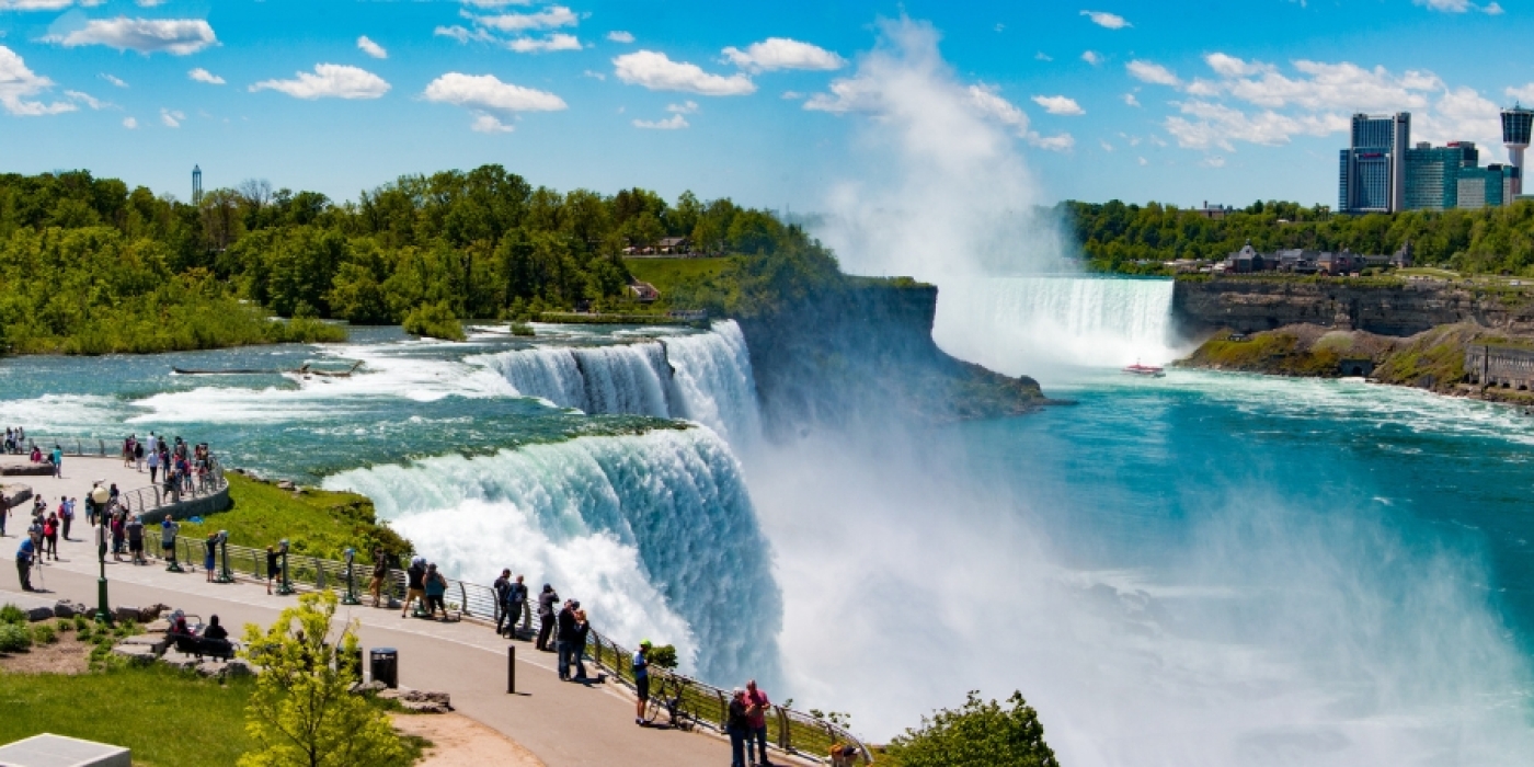 Breakfast. Departure toward Niagara Falls through New York State. Arrival in the late afternoon. Dinner with views of the illuminated falls and overnight.