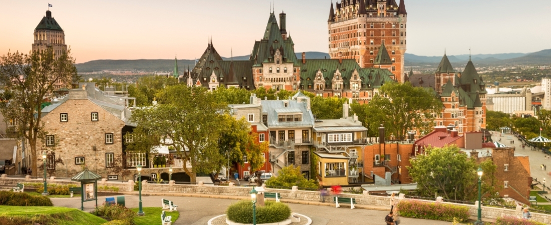 Travel through rural New England toward Canada, passing scenic villages and mountain landscapes en route. Cross into Québec Province and arrive in the Québec City area for overnight.